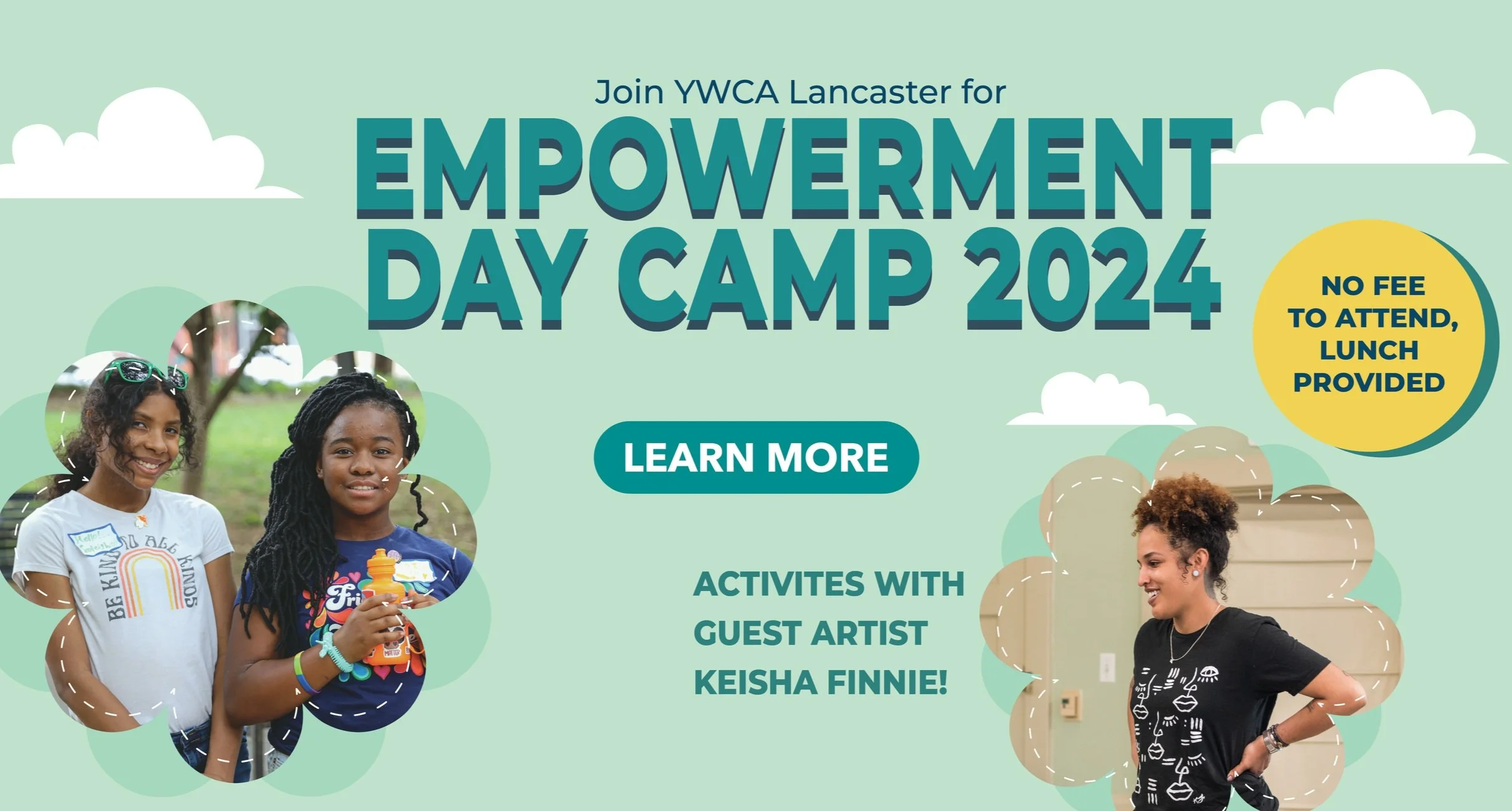 YWCA Lancaster is offering a one day camp for female-identifying children, ages 9-14, Empowerment Day. The day will focus on self-love and empowerment by building connections with others and exploring one’s own experiences. Throughout the day, children will participate in crafts, discussions, and activities related to topics such as gender roles, self-esteem, body image, drug and alcohol prevention, relationships, and more. Lunch is provided. Children with dietary restrictions or allergies should pack if they are unable to have the lunch provided.
